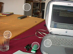 mit der Navigation. Das Glas, die Tastatur, das Feuerzeug und der Kühlschrank